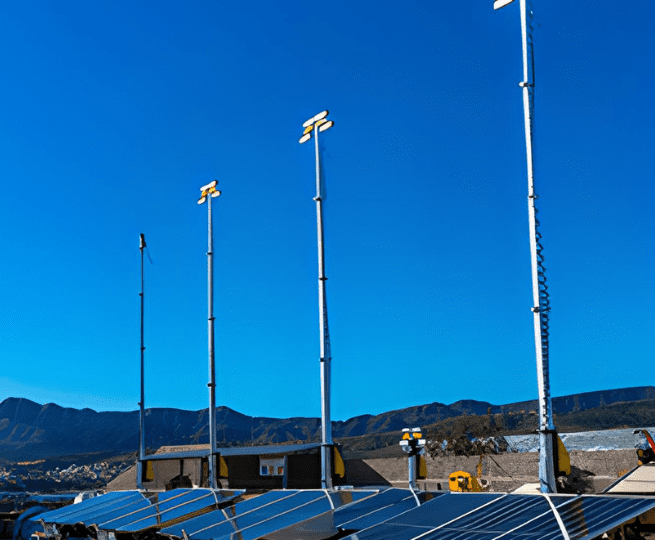 | Torres de iluminação móvel | Grandes áreas, entrada e backstage | Alcance alto e fácil instalação |